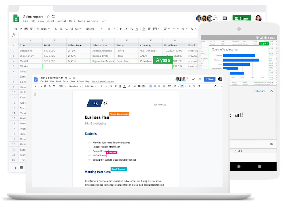 Work easily on documents, spreadsheets, and presentations across all your devices, with or without an internet connection.